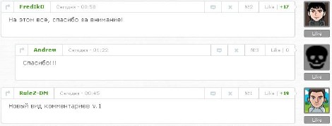 Новый вид комментариев v.1.0 + Модер-панель для uCoz